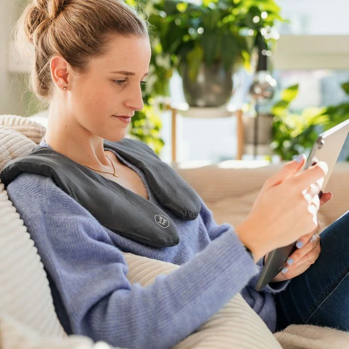 Ça peut paraître incroyable, et pourtant c’est généralement vrai : le lestage permet d’atténuer les tensions typiques des activités sédentaires dans les épaules, la nuque et le dos. Le poids génère en effet une pression profonde qui permet aux muscles de se détendre et a en même temps un effet stabilisateur, principalement sur le dos. Envie d’essayer ? Notre coussin épaules et nuque lesté Body Hug pèse un bon kilo sur les épaules, ce qui déclenche normalement l’effet recherché au bout d’un certain temps.