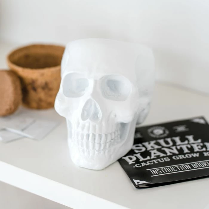 - Contient un pot tête-de-mort avec un trou d’égouttage à l’intérieur, une tablette de fibres de coco, un pot en fibres de coco, un paquet de graines de cactus, un bac de drainage
