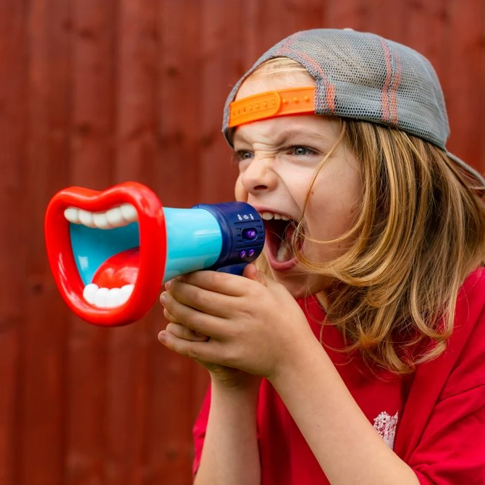 Un gadget rigolo pour les grands clapets qui n’en ont jamais assez : notre mini mégaphone changeur de voix permet aux filles de parler avec une voix d’homme, aux garçons avec une voix de femme, et à tous avec une voix de robot. Avec en plus une fonction « rires » comme dans les sitcoms américaines, pour faire comprendre même aux plus borné·es qu’ils ou elles doivent rire — et à quel moment !