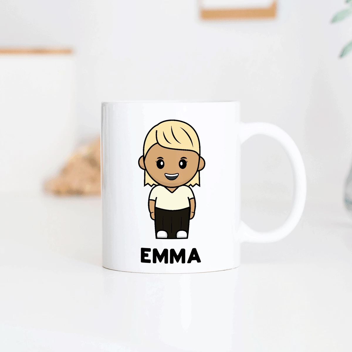 Si vous vous retrouvez un jour dans le besoin d’offrir un mug à une femme de votre entourage (c’est possible) et que vous ne savez pas quel genre de mug offrir, no problemo. Pourquoi ? Tout simplement parce qu’avec notre mug personnalisé avec cartoon femme et nom, vous ne pouvez pas vous tromper, quelle que soit la femme exceptionnelle (maman ? grand-mère ? sœur ? amie ? collègue ?) à laquelle le mug est destiné.