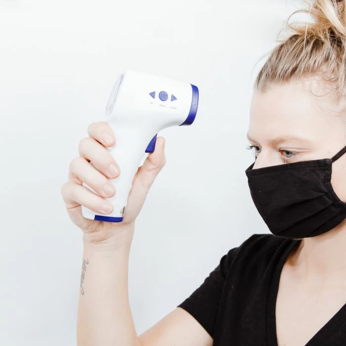 Les temps sont dépassés où l’on prenait encore la température avec des tubes en verre fragiles et douteux, remplis de substances toxiques et qu’on plaçait avec peine soit sous le bras, soit dans un orifice moins accessible et où l’on devait attendre une éternité pour avoir enfin un résultat (plus ou moins fiable). Aujourd’hui, on mesure la température de manière rapide, précise et élégante : merci la technologie ! Par exemple avec ce thermomètre à infrarouge sans contact qu’on place tout simplement devant le front et qui indique précisément si notre température corporelle est normale ou pas (dans ce cas, un avertissement sonore retentit).