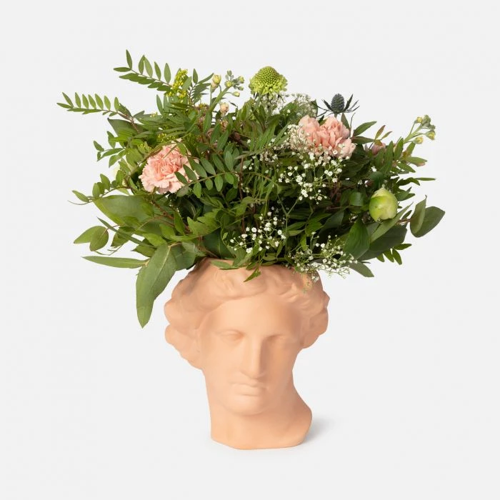 - Une tête de dieu à couronner d’un bouquet de fleurs